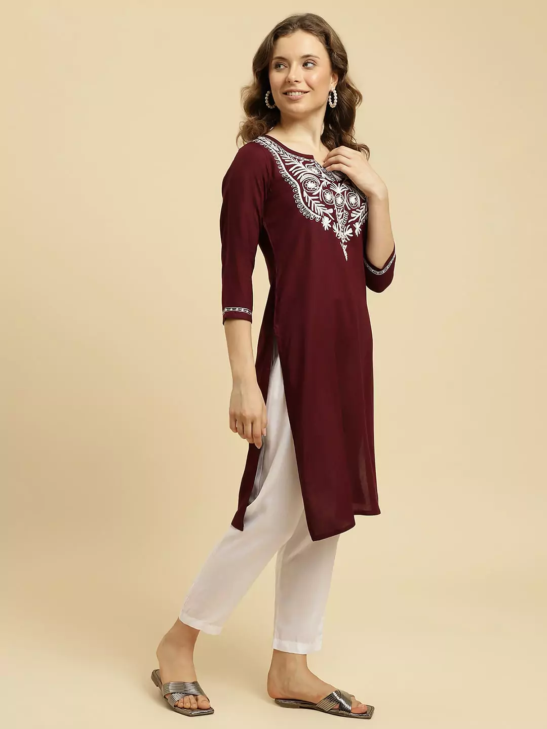 Maroon Colored Multi Embroidered Kurti