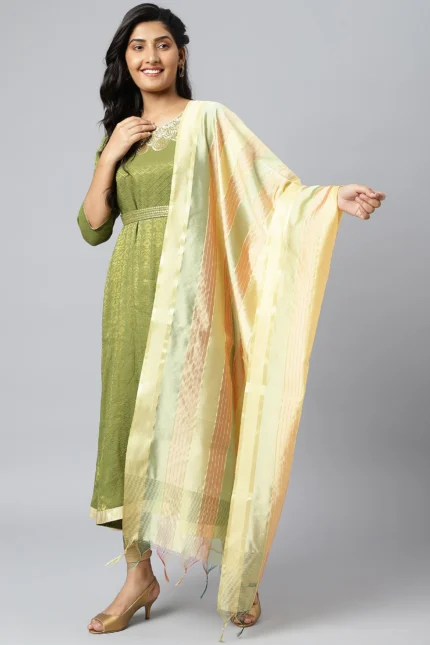 You can team this dupatta with a kurta set, anarkali, lehenga or skirt and complement your look with traditional style danglers to look fabulous.