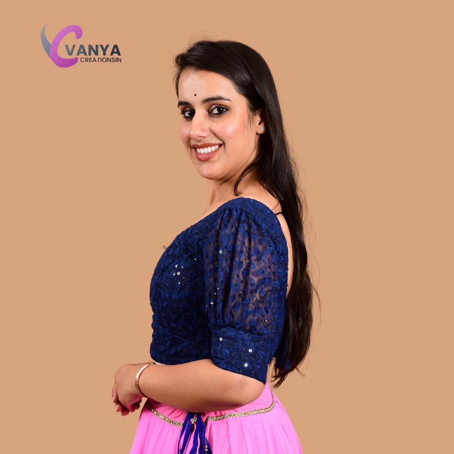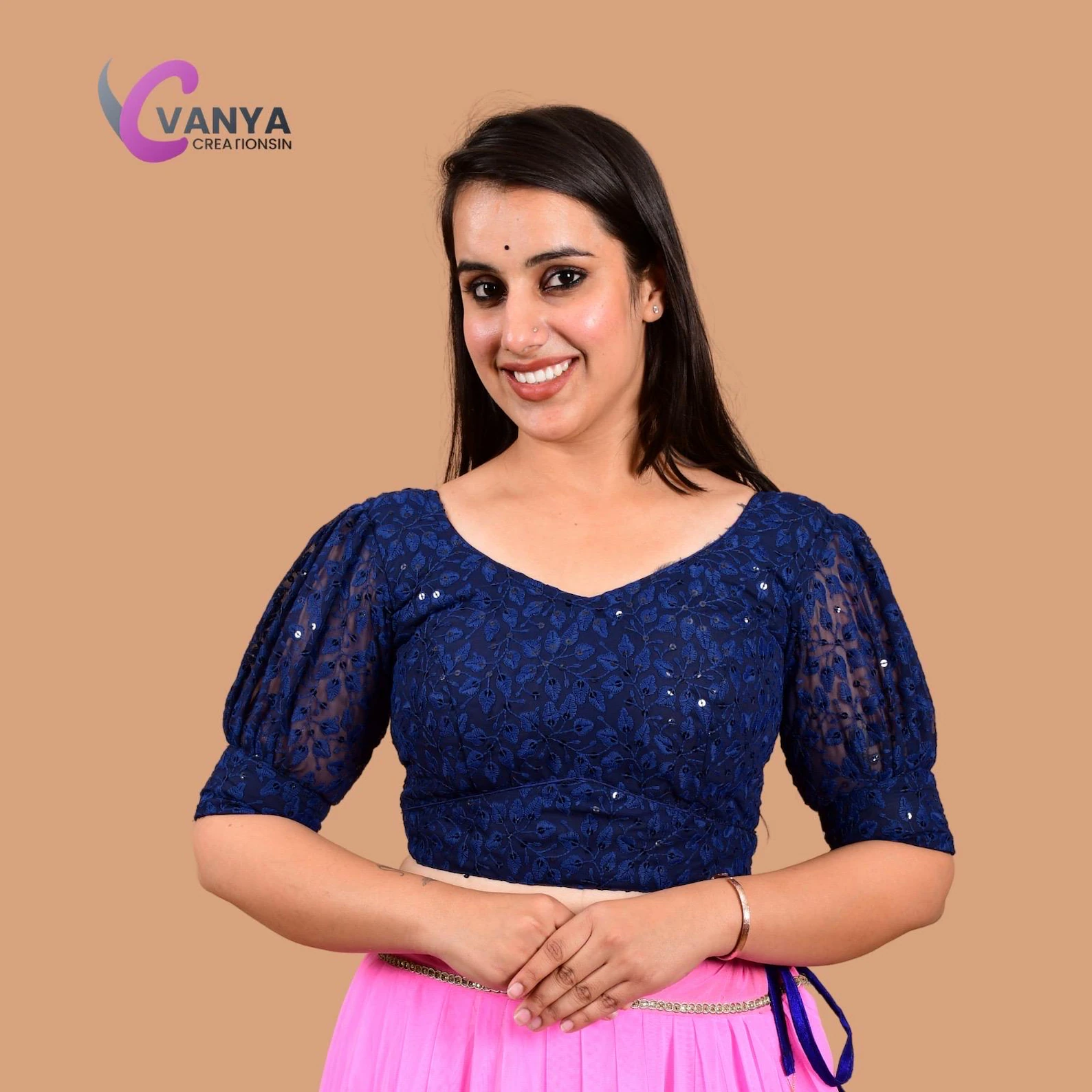 Elevate your saree look with our Readymade Round Neck Saree Blouse, crafted from premium chikankari embroidery fabric. Perfect for any occasion, this blouse features a round neck design and elegant detailing.