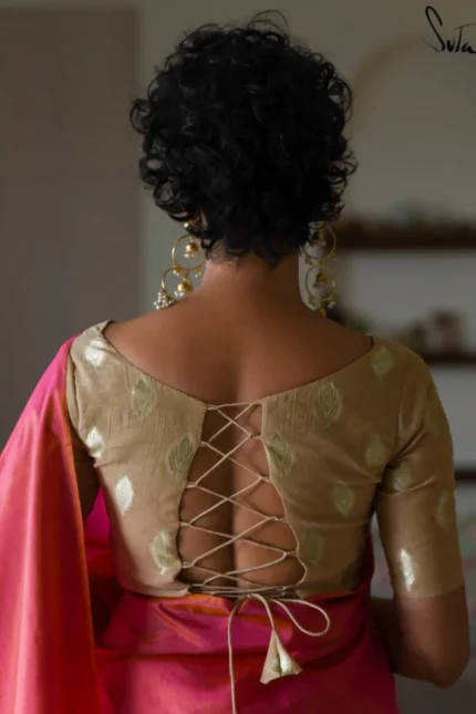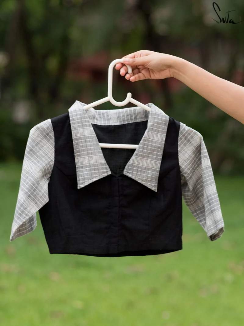 - Half And Half Full Sleeve Blouse With Zari nd Sequins Embroidered Black Velvet and Off-White Thread and Sequins Embroidered Net.