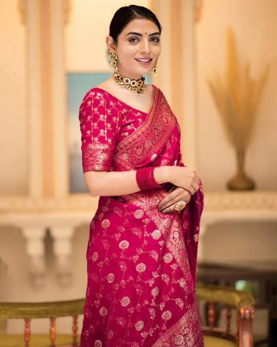 Drying: Hang the saree indoors to dry it. Avoid direct sunlight, as it may cause color fading. Do not wring the saree to remove excess water; instead, gently squeeze or pat it.