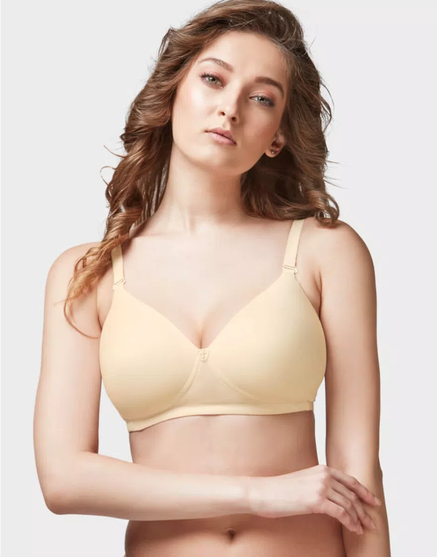 Introducing the Touche Bra – a true masterpiece crafted with a moulded Feather Touch Fabric, ensuring the utmost comfort. The 2 mm super-soft padded cups provide total concealment, creating a seamless and flattering look. Embrace confidence with the higher armhole design, effectively covering excess side flabs and concealed band elastics for added comfort. The full center front panel offers extra support, providing a secure and comfortable fit. The deep scoop back comes with detachable and fully adjustable micro finish strap elastics, offering versatility and customizable wear. Available in a variety of colorways, the Touche Bra allows you to express your style while enjoying unmatched comfort and support. Elevate your lingerie collection with this exquisite piece that embraces both style and functionality.