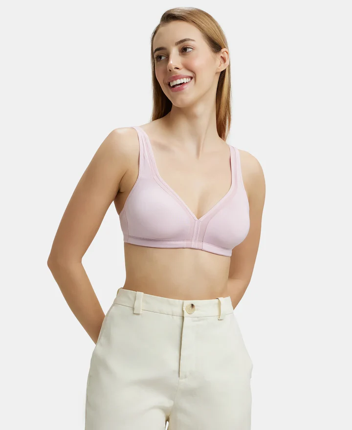 Non Padded Soft Touch Microfiber Elastane Stretch Full Coverage Everyday Bra with Stylized Mesh Panel