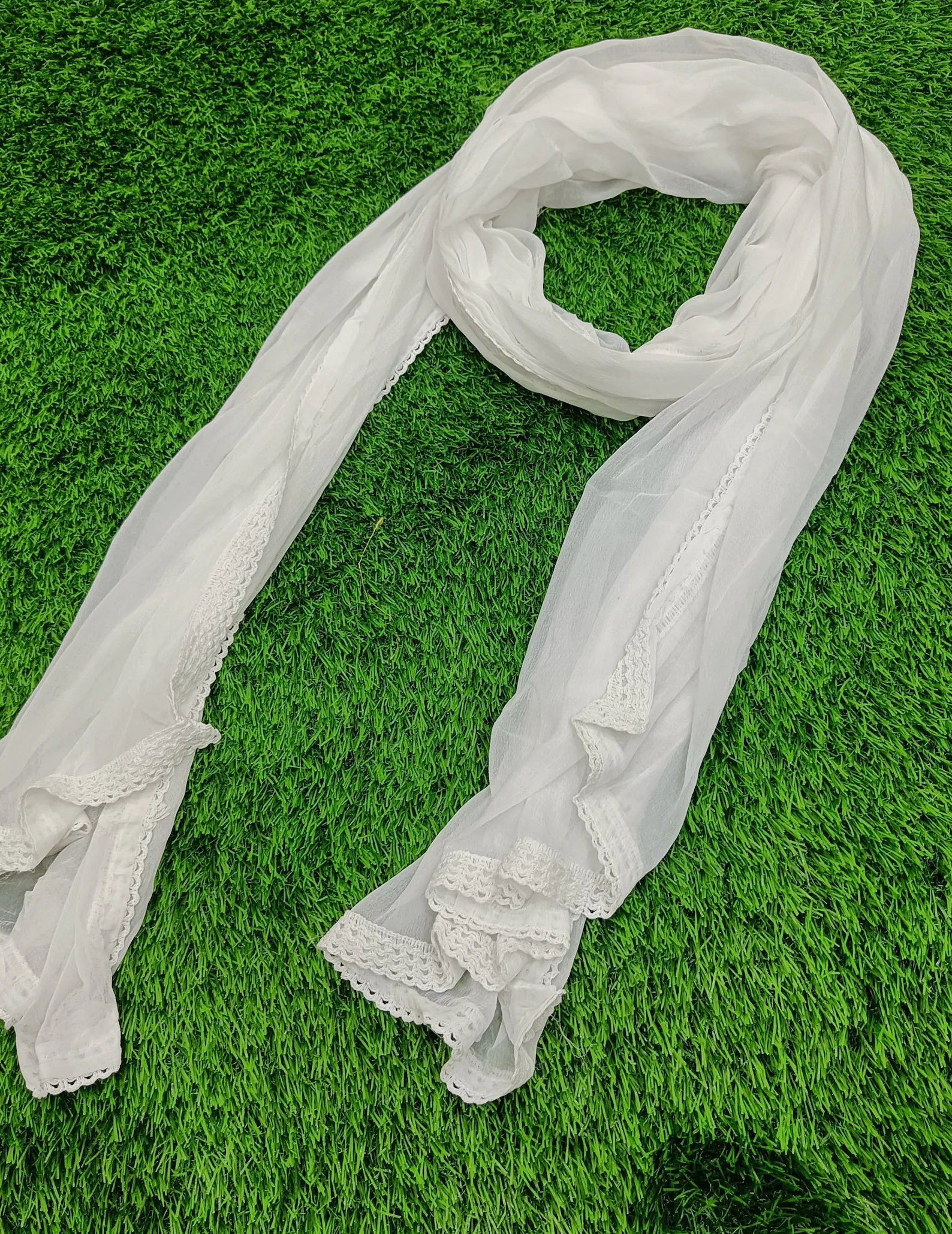 You can use this dupatta in multiple ways. This light-weight dupatta is Embellished With a crochet lace Border on all sides.